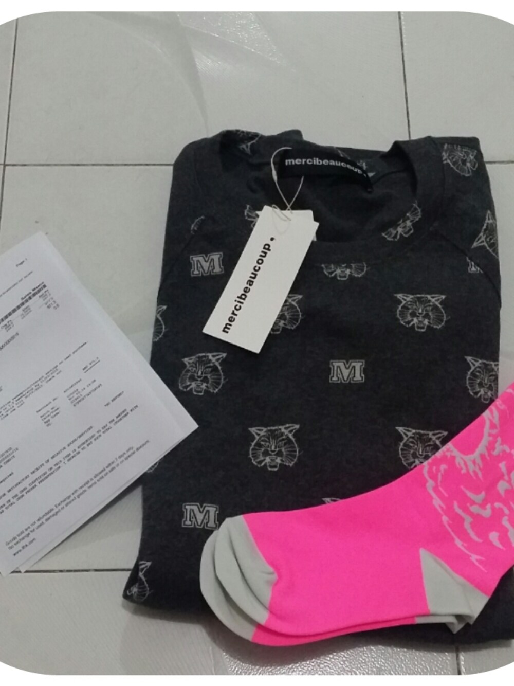 感謝家姐送給我第一件mercibeaucoup,長衫 及她終於買了人生第一對merci襪😂😂 My sister bought this T-shirt to me as a persent and her first a pair of socks from mercibeaucoup. Thank you very much, my sister😆😆