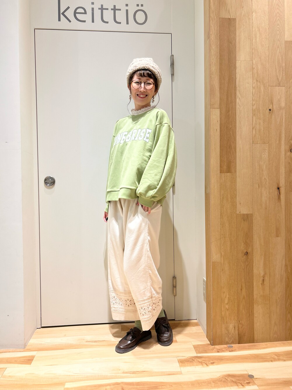 タブンネのニットキャップ/ビーニー「ボアロールワッチ」を使ったコーディネート