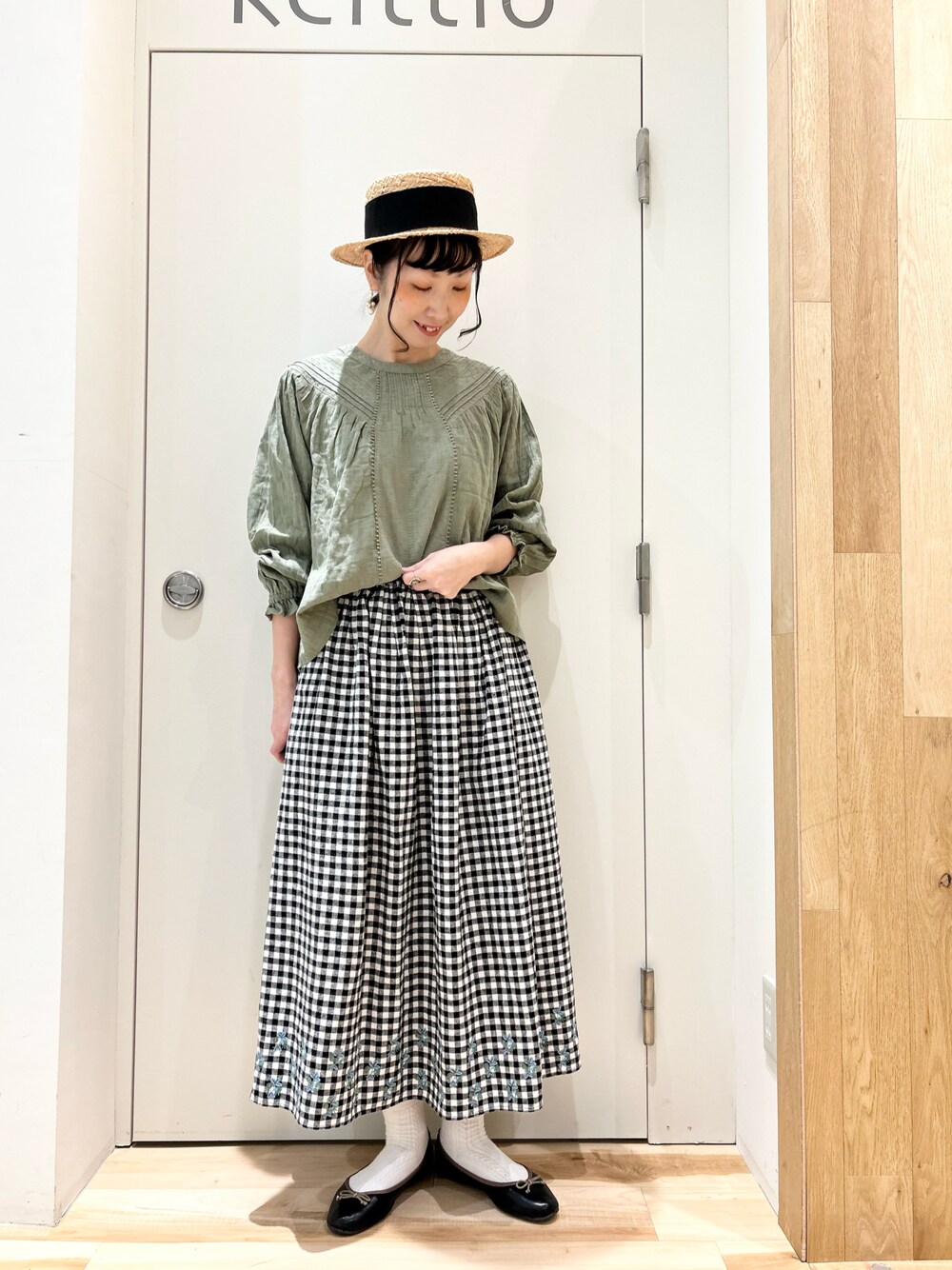 タブンネのシャツ/ブラウス「ドビーピンタックブラウス」を使ったコーディネート