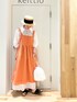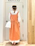 前後で使えるキャミワンピース✨ 長さは3段階に調整出来ます🙆♀️ 1番長めにしていますが、身長が高い私には少し短めでした💦 スカート部分には裏地がついていますが、キナリは透けるので、中にペチスカートやスカートなどを入れて着用するのがオススメです☺️ 今回はオレンジを着用🍊 合わせたスカートの見え方が可愛すぎてきゅん❤️ 薄手のスカートなので、キャミワンピースの下に重ねても暑すぎる事なく着用出来ます☺️ 明るいオレンジ色で夏らしいコーデに仕上げました🍊
