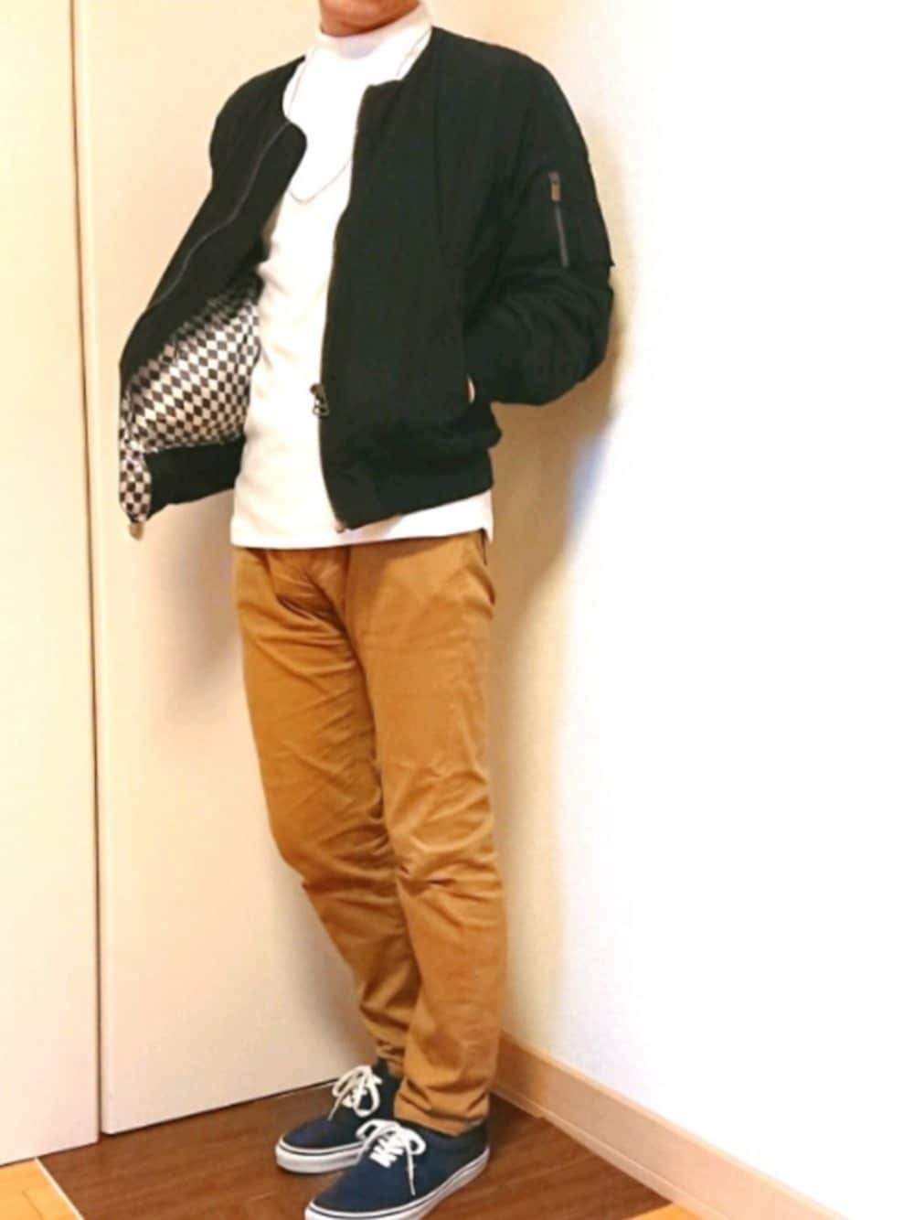 お花見に行ってきます。夜はまだ寒いのでma1を着てみました。裏地がチェッカーになっているのでシンプルなコーデもアクセントになります。