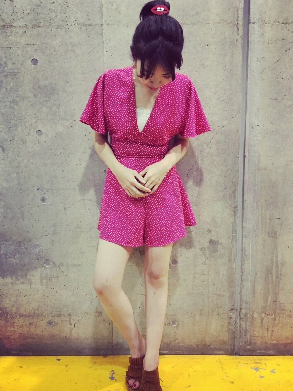 真夏のデザフェス1日目。 ド派手な感じで😆 中に着てるPJのストラップレスブラめっちゃ使える! 色ち買いしてもーた。