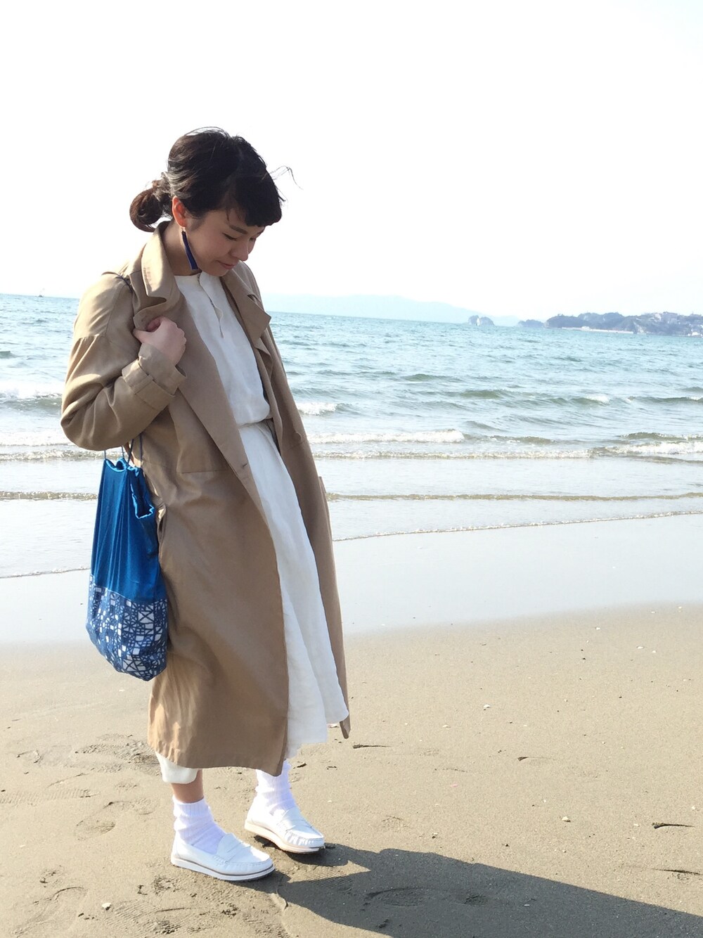 アウター:mizuiroind ワンピース:aaAaa ボトム:kbf シューズ:BIANCA バッグ:minaperhonen 春が、やってきた。うれしい! 踊り出せそうなくらい。 春の海は眩しくてちょっと寂しくてキラキラしててとてもすきです。
