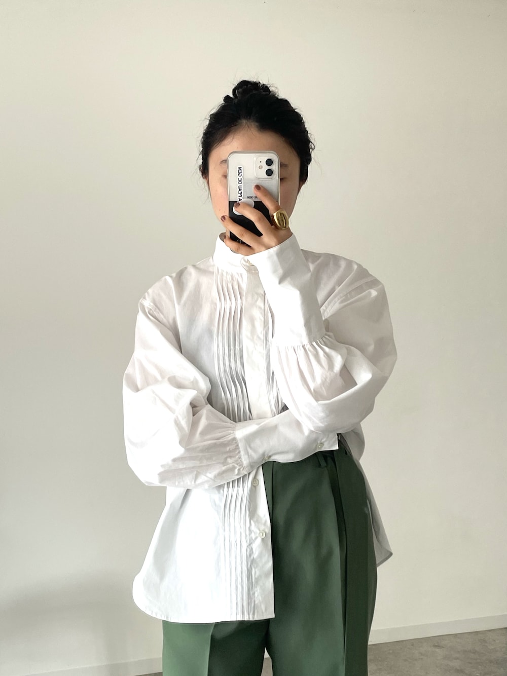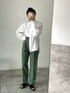 ボリューム袖のシャツにカラーパンツ