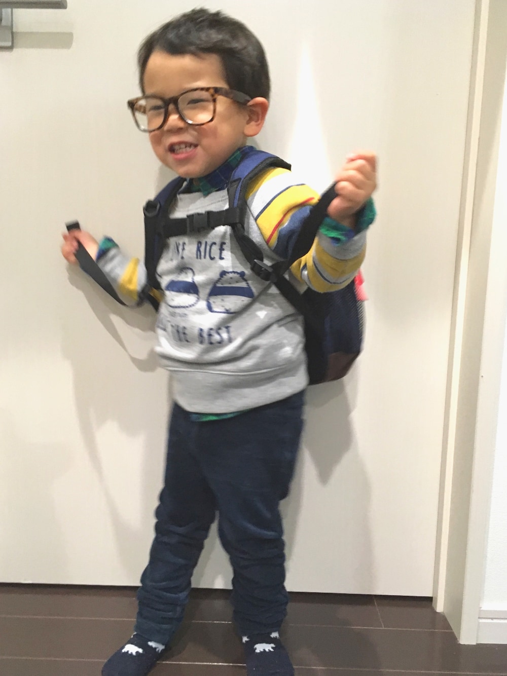 こんにちは。 最近、スリーコインズで子供用の伊達メガネを購入し、変顔に磨きのかかっている息子です🤪 息子の大好きな🍙トレーナーにシャツをインしてみました😊分かりづらいですが…🙏 恐竜リュックは保育園にもお出かけにも大活躍💕もうすぐ3歳の息子に丁度良い大きさです🙆♀️ いいね👍お気に入りやコメントありがとうございます❤️