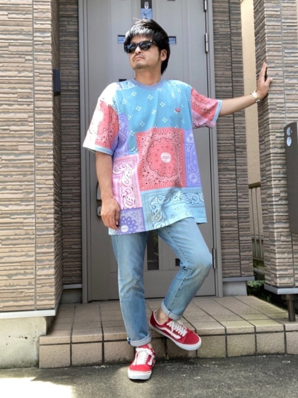 ファッションの系統は違うけど、大好きなウルマさんのOPENING ACT × PARAGRAPHのバンダナパターンビッグT❗️ 最高にかっこいい😆 しばらくこのTシャツのコーデ増えます笑