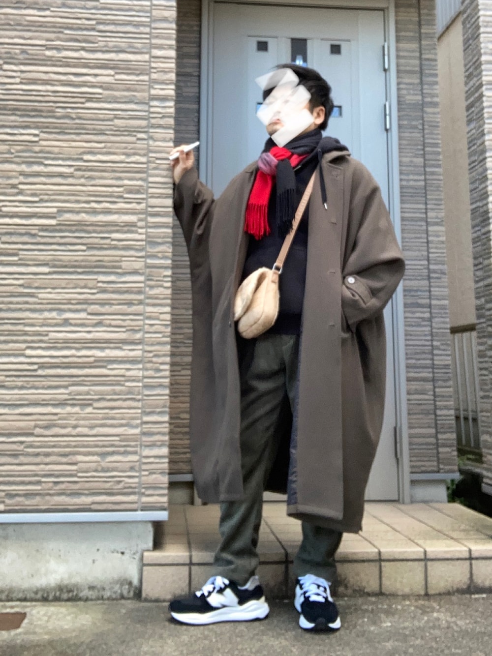 タルナンドのステンカラーコート「act'm ビッグシルエット ドルマンコート」を使ったコーディネート
