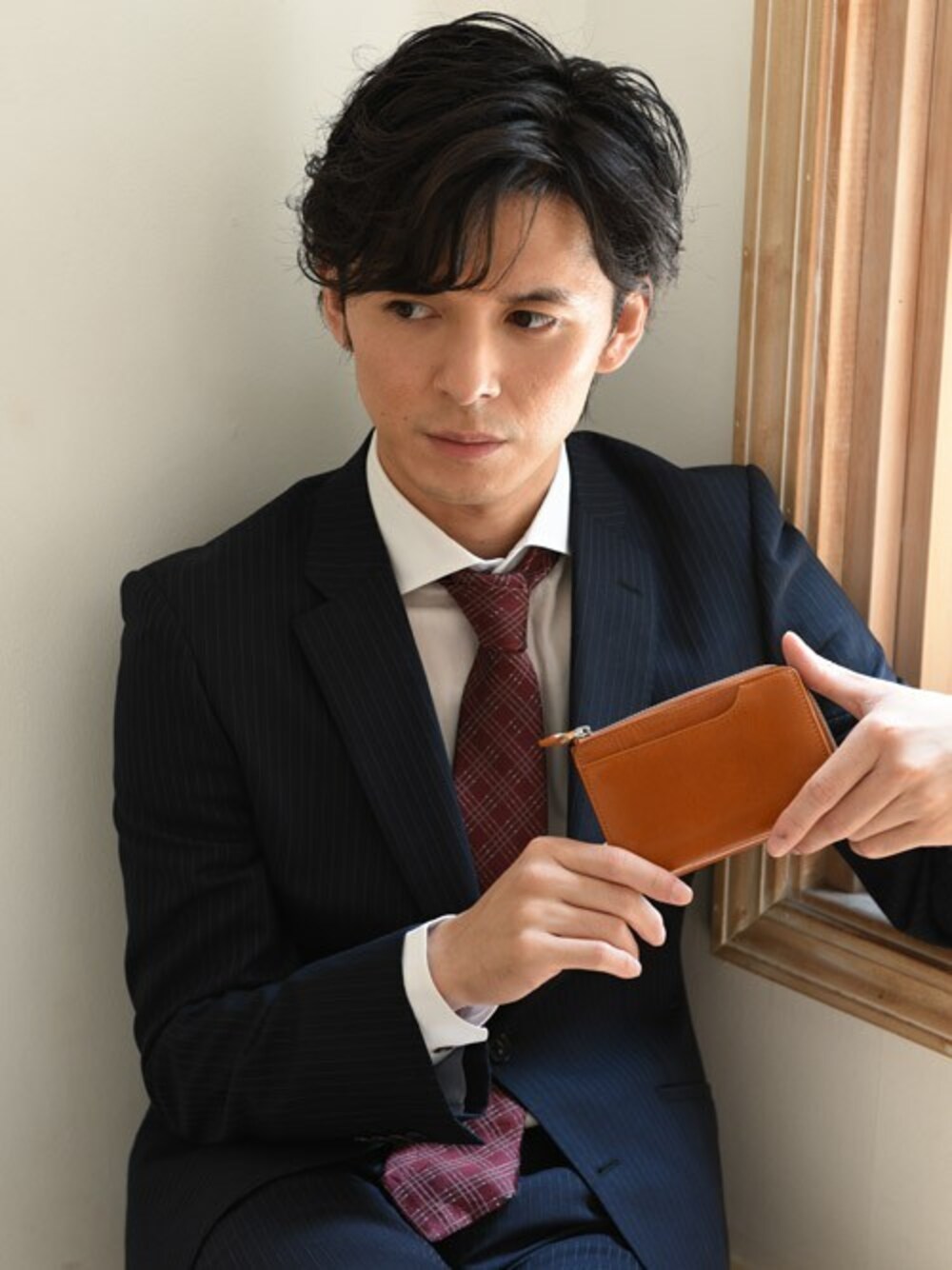 多田の財布「オリーチェレザーミディウォレット」を使ったコーディネート