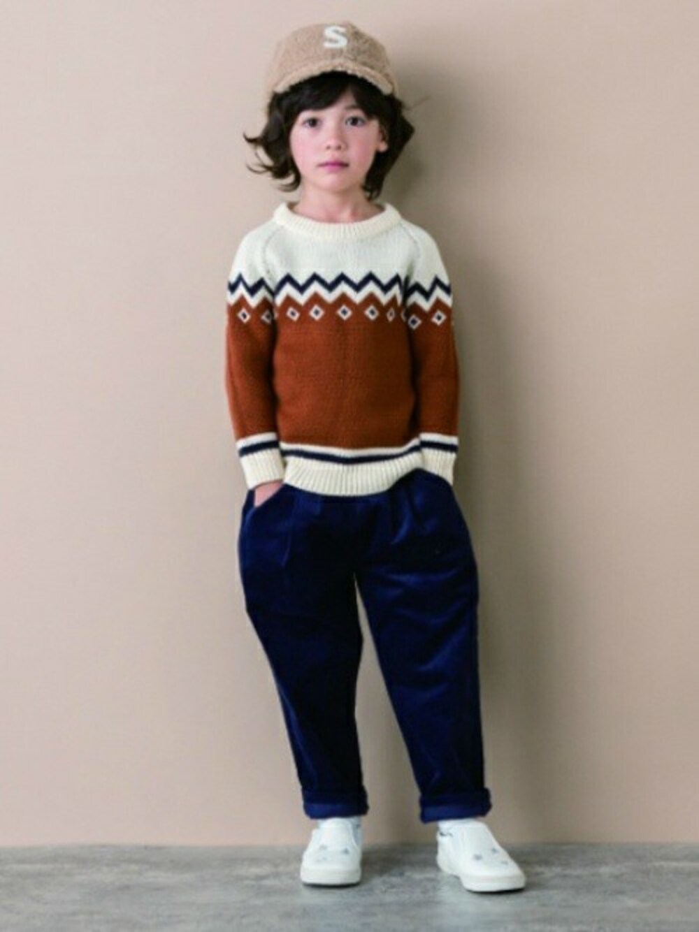 ノルディック柄がこれからの季節にぴったりのジャカードニットです。落ち着きのあるカラーパレットが幅広いコーディネートにマッチ♪秋冬の防寒アイテムとしても欠かせない一枚です。内側にお名前を記入できるタグつきです。 ボトムは素材感を活かしたコーデュロイテーパードパンツです。腰周りへタックを寄せたこちらは程良くゆとりがありはき心地も◎。内側にお名前を記入できるタグつきです。※アジャスターゴムでウエスト調節可能 足元は星柄デザインのスリッポンで。カジュアルでありながら落ち着いた雰囲気もあり◎。サッと脱ぎはきができる使いやすさも魅力です。動くたびキラリと主張し、コーデを印象的に演出するアイテム。 アクセントとなるモコモコとしたあたたかみのあるルックスが目を引くボアキャップはアルファベットをワンポイントとしてオン。寒い季節に活躍してくれる、ストリート感たっぷりのアイテムです!こちらは大人気のため再生産決定!!11月中旬入荷予定になりますので、再入荷のお知らせをご希望する場合は「お気に入り登録」を行ってください♪