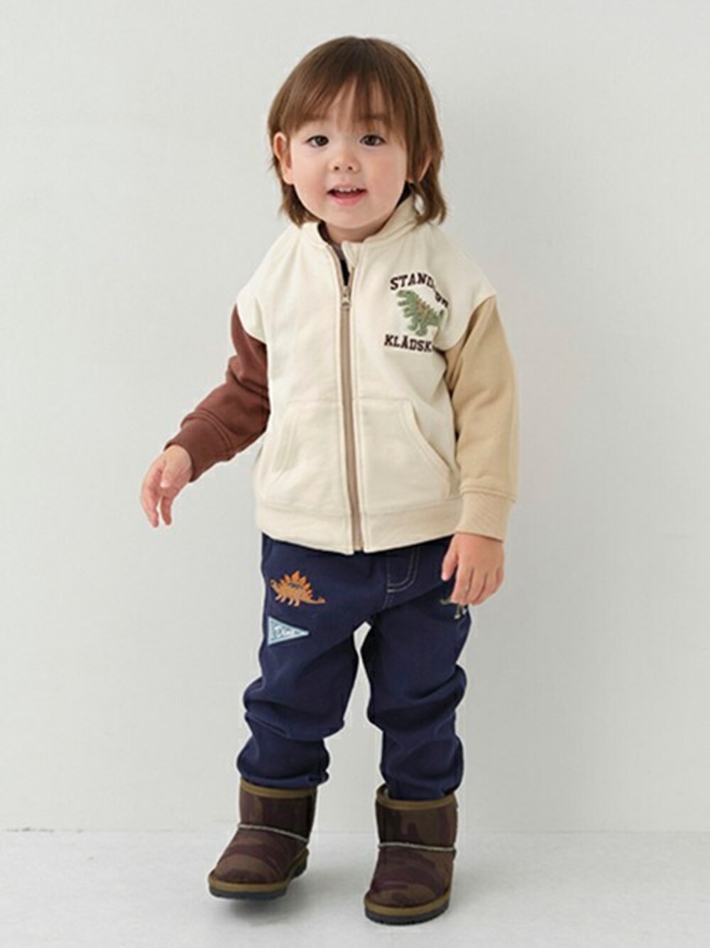 kladskap クレードスコープのスウェットパンツ「恐竜刺しゅうロング丈ストレートパンツ」を使ったコーディネート