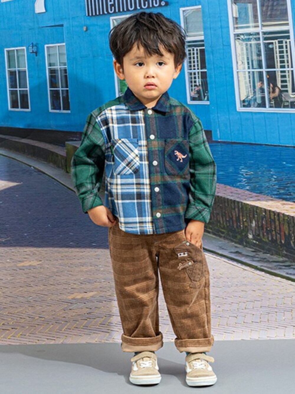 kladskap クレードスコープのシャツ/ブラウス「恐竜刺しゅうチェック長袖シャツ」を使ったコーディネート