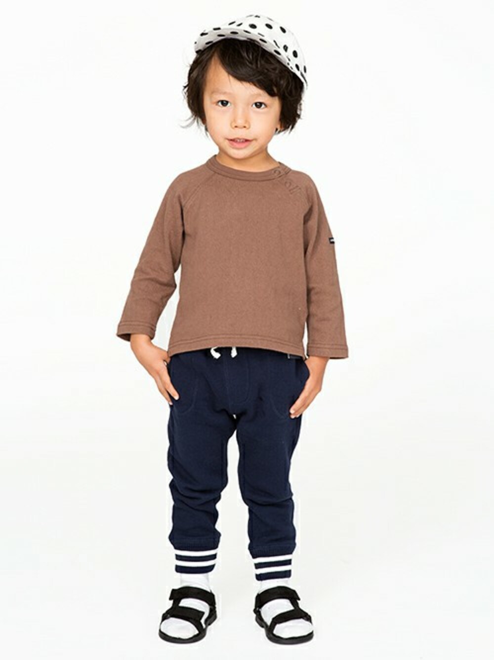 綿100%のシンプルなデザインでデイリー使いにピッタリのラグランスリーブTシャツはやや厚めの丈夫な素材とラインにこだわりました。男女兼用で着用頂けるカラーリングがおすすめポイント。ワンサイズ上を着ても袖がもたつかない9分袖。左袖のロゴ入りタグや、前後で長さに差を出した身丈などディテールにこだわりが光る1着♪裾サイドにはスリットを入れて動きやすく工夫しました。内側にはお名前を2通り記入できるネームタグをご用意。下段から記入すれば「おさがり」も難なくクリアできる仕様です。複数買いしたくなるプライスも魅力的。保育園や小学校などの通学着などにも大活躍。ロングシーズン着用できるのでデニムやスカート・オーバーオール・サロペットなど様々なコーディネートをお楽しみください!ボトムはソフトな裏毛生地で仕立てた、リラックススタイル満点のスウェットパンツでゆるカジに。ウエストの飾りコードがさり気ないアクセント。裾はライン入りのリブで切り替え全体にメリハリをプラスしました。両サイドポケットつき。ウエストゴム入りです。