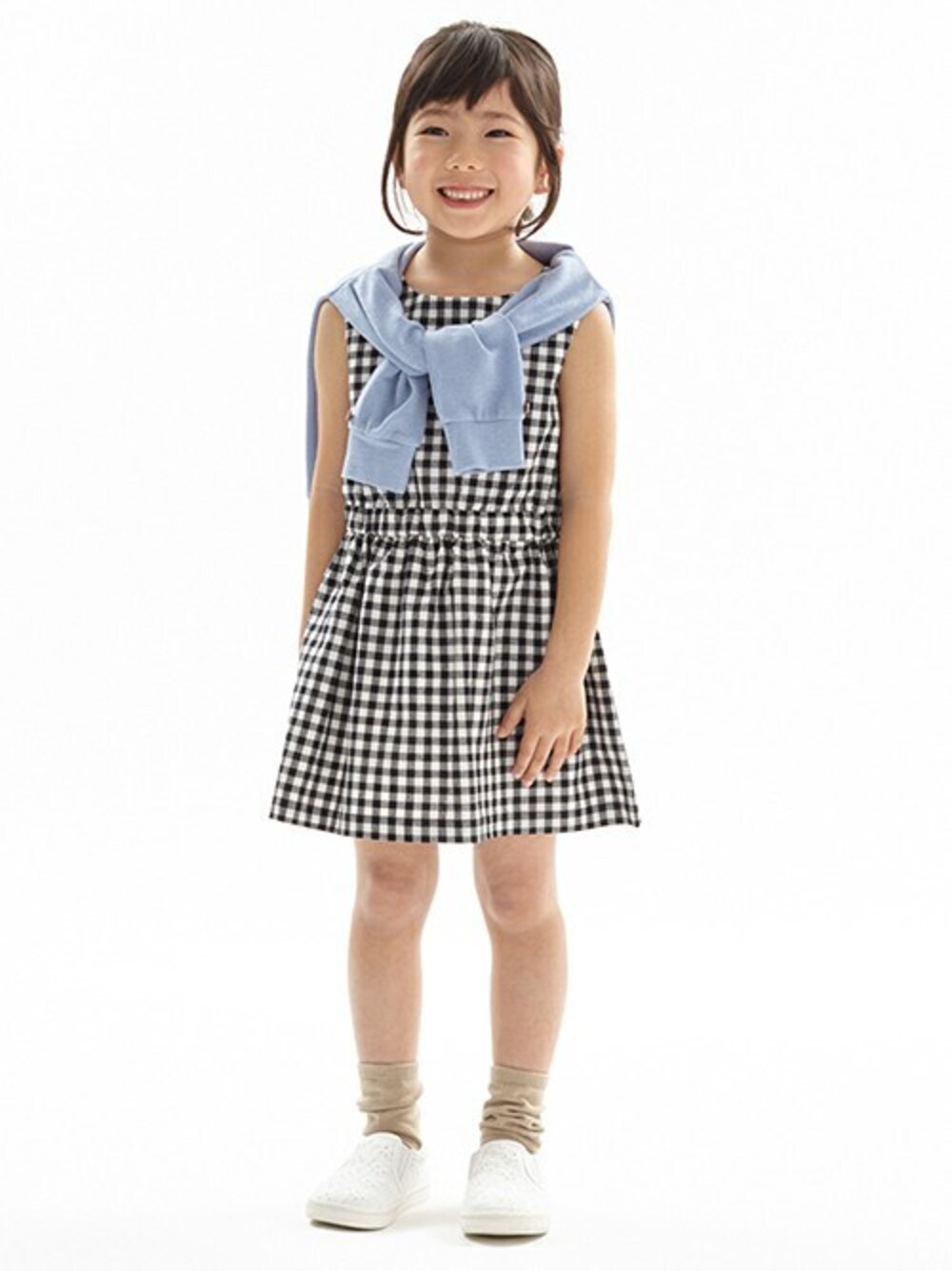 ボタン開きのバックスタイルに個性が光るノースリーブワンピースはフィット&フレアのメリハリあるシルエットで、女の子らしい印象を与えるアイテム♪赤と黒はギンガムチェック柄、サックスは無地と、カラーによってパターンが異なります。内側にお名前を記入できるタグつきです。袖口へミニリボンをトッピングして、上品な甘さを添えたニットソーカーディガンはクルーネックのベーシックなフォルムで、デイリーコーデに取り入れやすいアイテム♪カジュアルからキレイめまで、幅広いスタイルに着回せます。足元はサッと脱ぎはきができるラクチン仕様がデイリーコーデに重宝するスリッポンで。白はカットワークレース、ベージュはきゅっと編み込んだナチュラルなマテリアル、カーキは迷彩柄の布帛を使用。カラーによってガラリと雰囲気が変わります。