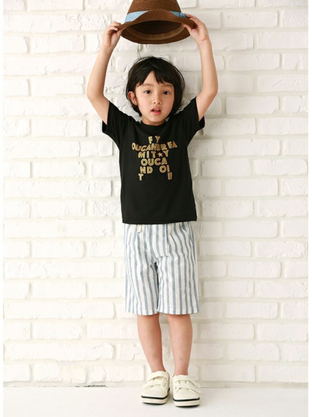 ロゴを集めて表現したスターマークに、ポップな遊び心が光るTシャツです。クルーネックのベーシックなフォルムは、さまざまなボトムスとバランスを取りやすく、デイリーコーデに大活躍♪ ソフトな風合いで着心地も良好です。内側にお名前を記入できるタグつきです。※80、90サイズのみ肩開き 幅広のポップなストライプ柄で、コーディネートのポイントになるハーフパンツです。サラッとしたナチュラルな素材感で、デイリースタイルに気兼ねなく取り入れられるアイテム♪ バックのロゴ入りパッチがブランドをおしゃれに印象づけます。バックポケットはフェイクです。内側にお名前を記入できるタグつき。※アジャスターゴムでウエスト調節可