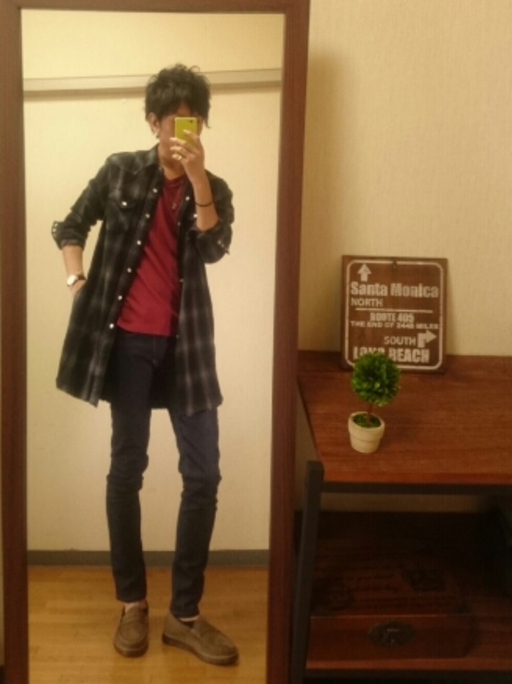 おはようございます(´・ω・`) 今日は全体的にダークな色合い🐻 しかも画質も暗い💦 パンツやっぱりピチピチっ👖 ロングシャツで縦長シルエット✨ では、良い週末を😆✋🎵