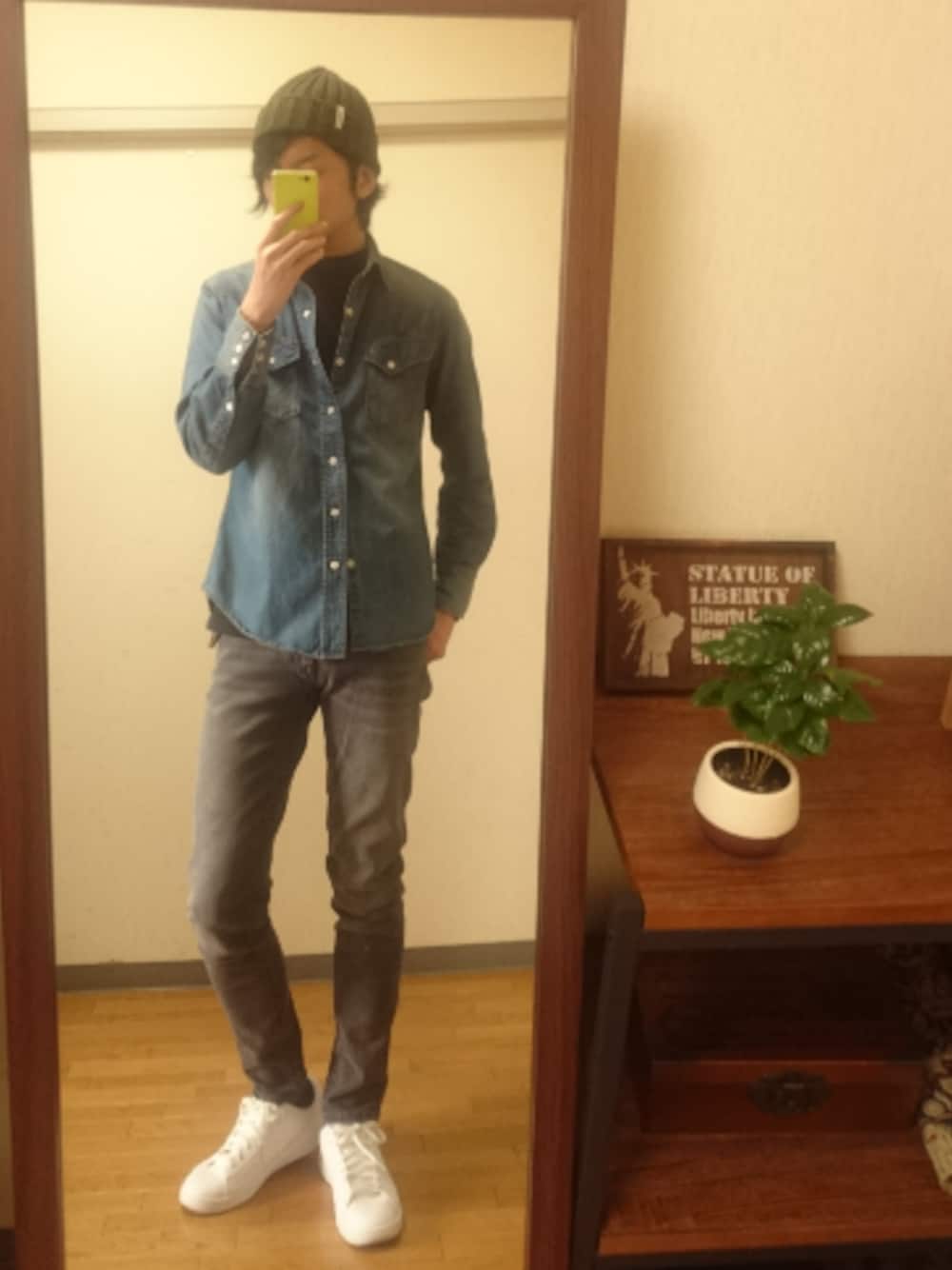おはようございます☀ 寒いですね💦 雪は降ってないけど寒い⛄ コーデはデニシャツにモックネック👕 タートルは似合わないけどモックネックはギリギリセーフ😆✨ パンツはApril77の黒デニでタイトに🎵 早く暖かくなってほしい(´・ω・`)💨