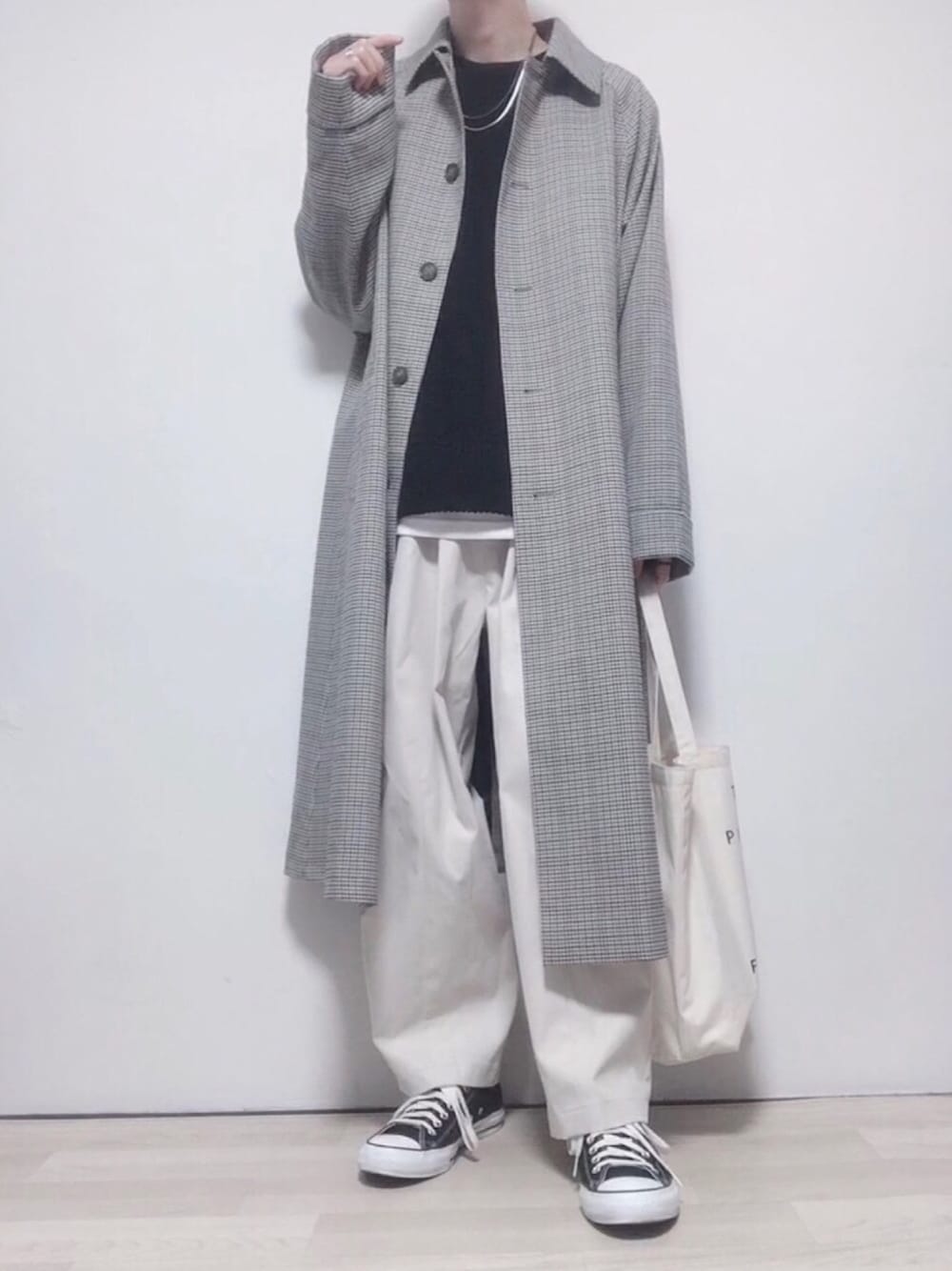 本日も閲覧いただきありがとうございます😌 たっくんさん、昨日はフォルダinありがとうございました☺️ グレーチェックのコート使ったモノトーンコーデ😉 インナーをスウェットからニットに変えるだけでまだまだ快適に過ごせそうです🤭 明日もよかったらまた見てくれると嬉しいです😌