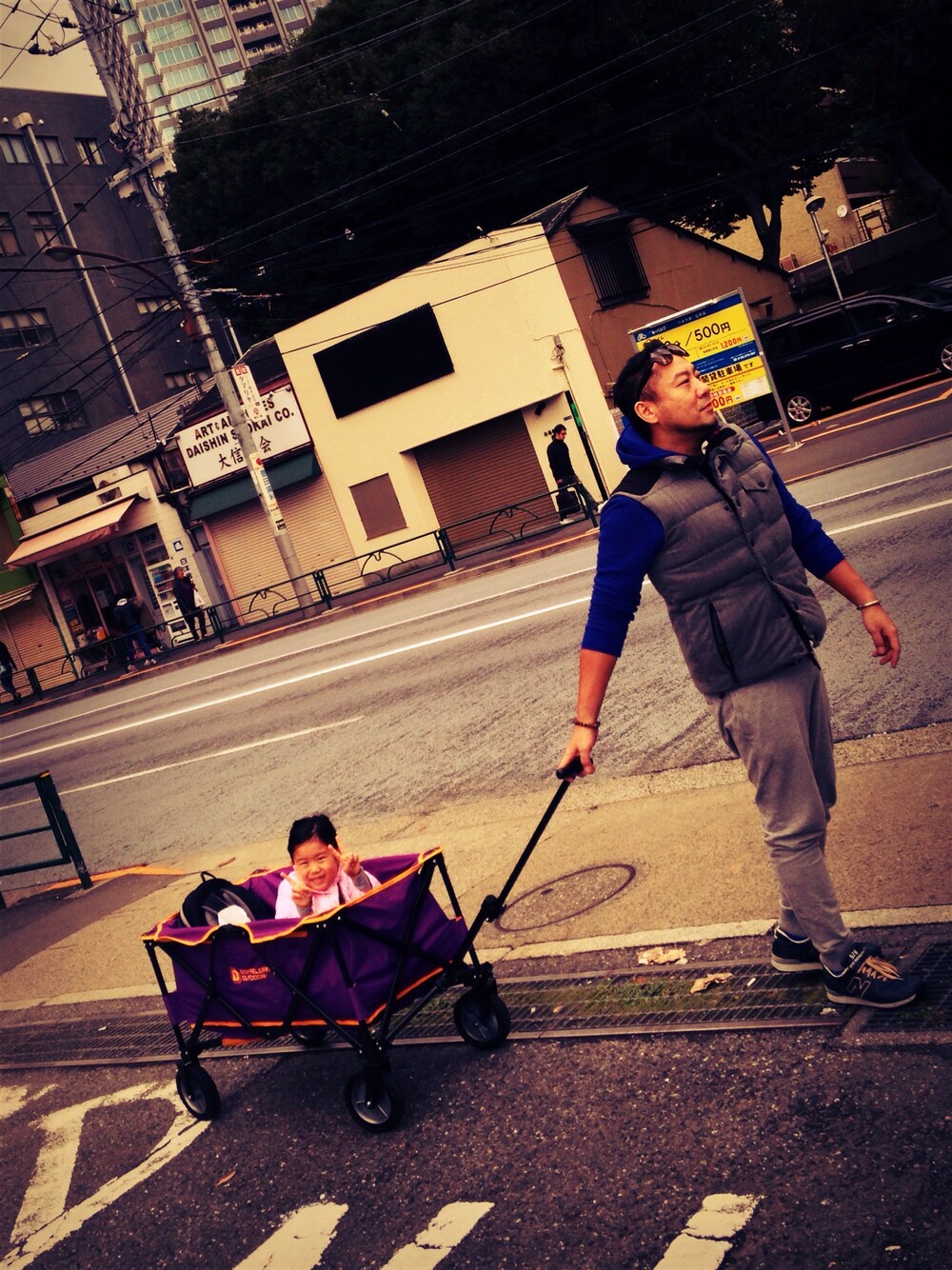 引っ越しだったので動きやすくスウェットで。 娘はカートに乗って遠足気分 at 六本木