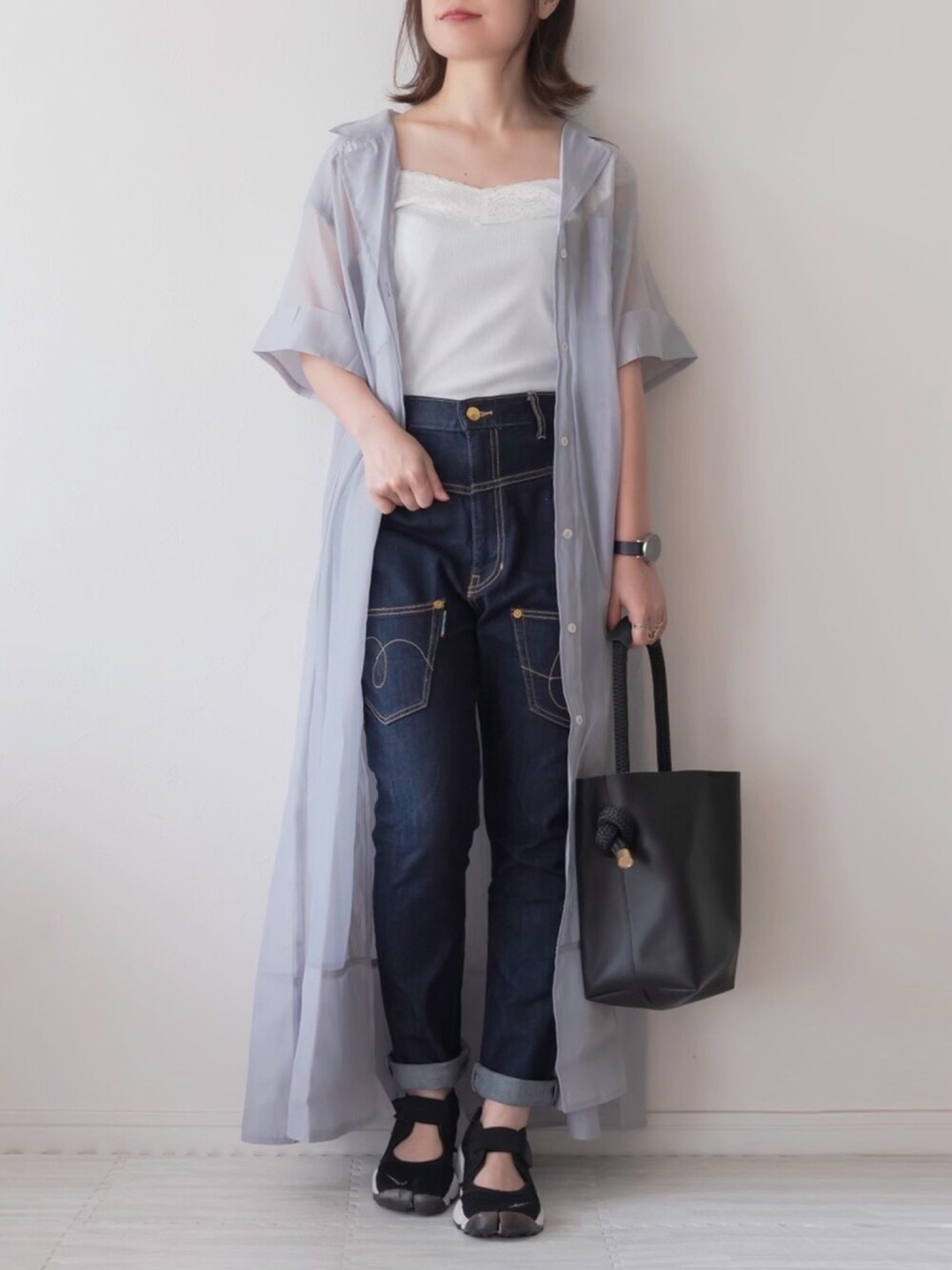 KOH.styleさんのシャツワンピを今日は羽織で着てみました😊 シースルーの軽い素材なので歩くとふわっと揺れるのがすごく可愛いです💕 *コメントやDMはinstagramにお願いします instagram→strawberrychako