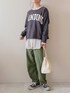 少し前に撮ったコーデ… トレーナーとパンツはお気に入りで長く着ているアイテム✨ インナーのシャツはシアーシャツを合わせました。ちょっとだけ涼しげかな…!?