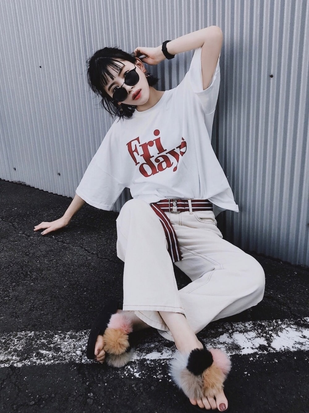 F r i d a y s 💋 このメンズTかわいすぎる>< 久しぶりなファーサンダルで テンション上がる! やっぱ可愛え〜〜な〜 🌐Instagram : tae_624 https://www.instagram.com/tae_624/