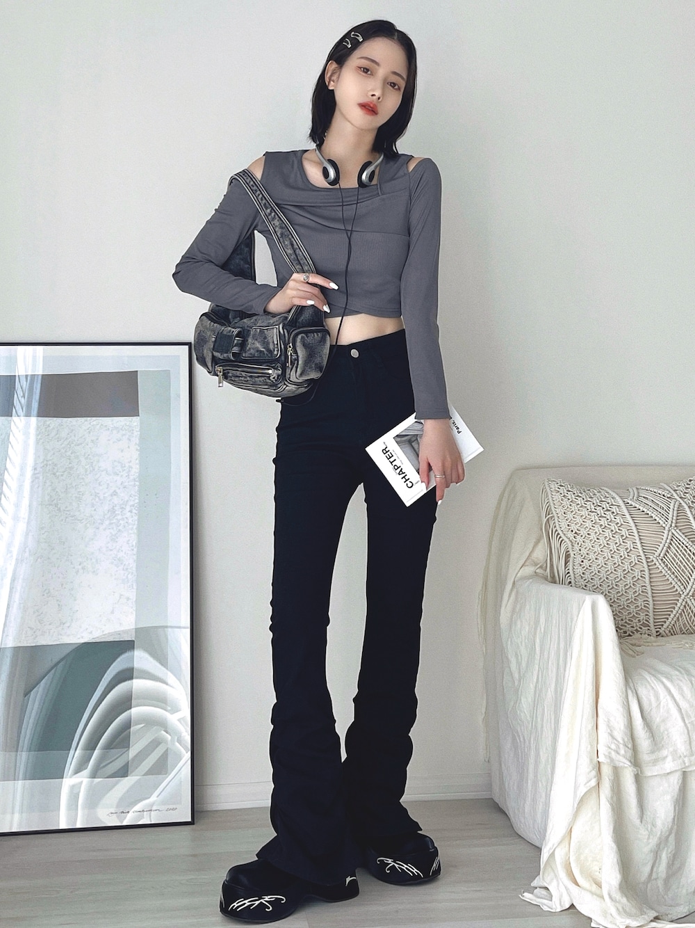 TAE×CHICK 新作コラボアイテムと 合わせてみた! くしゅっと 足元ボリューミーなパンツと 厚底デザインが可愛いシューズ♡ この組み合わせの相性が ばつぐんすぎる!✌🏻