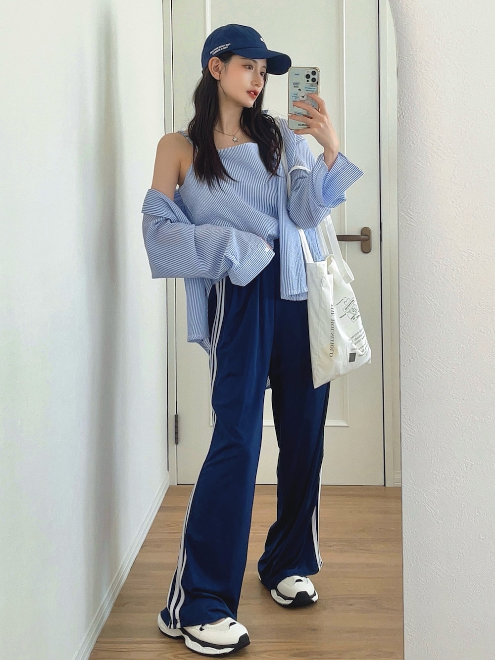 ブルーコーデ。 ゆるっとカジュアルに。 スポーティーさもぷらす➕