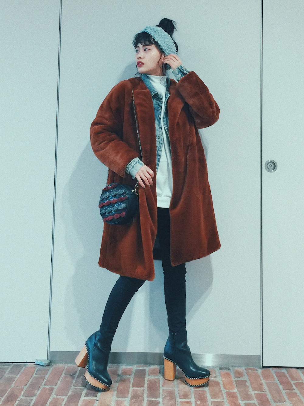 TAEちゃんのパーティースタイル🌹 カジュアルな組み合わせがしたくて、 あえてデニムとパンツスタイルにしてみた。 ファージャケットで、華やかさをプラス♡ ヘアーはいつものおだんごに cucuriヘアバンドで完成ぇ〜〜っ!💞💞