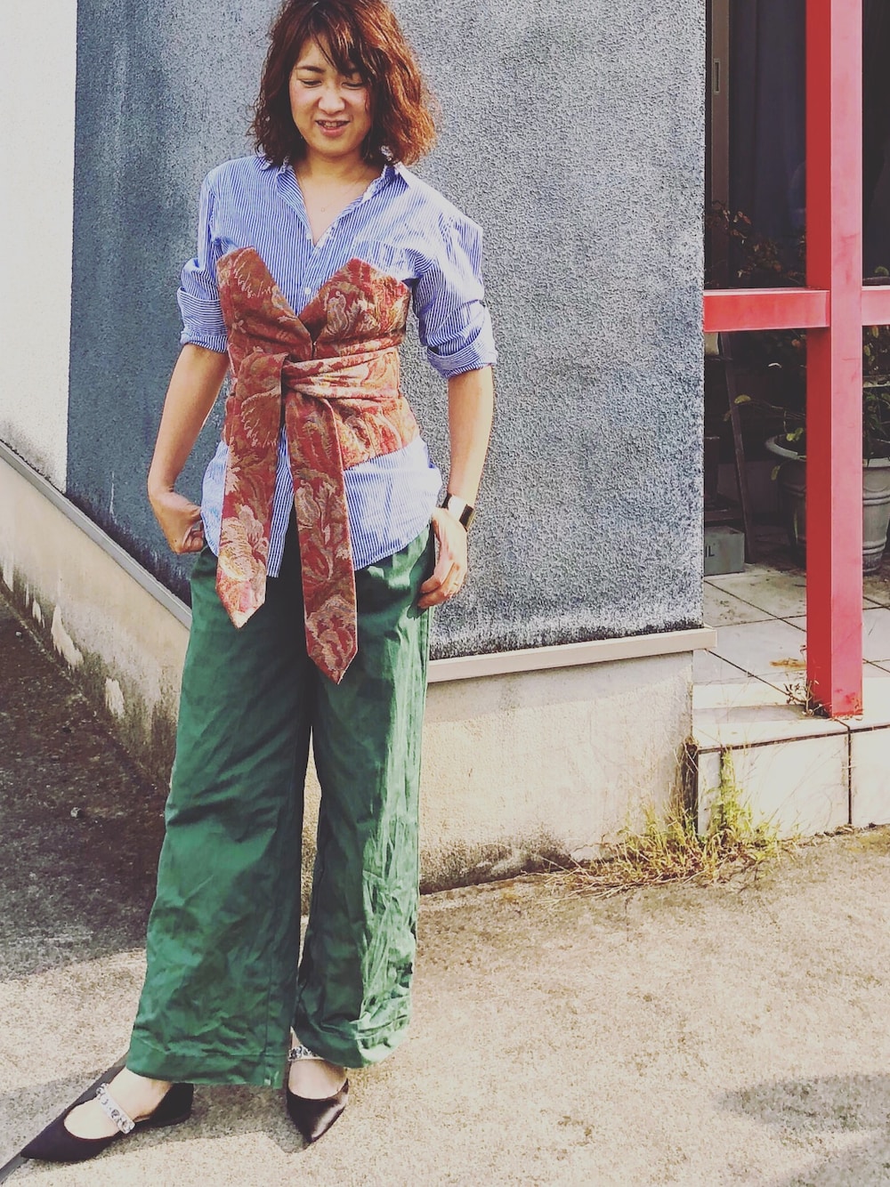 メンズシャツを使った女っぽコーデ