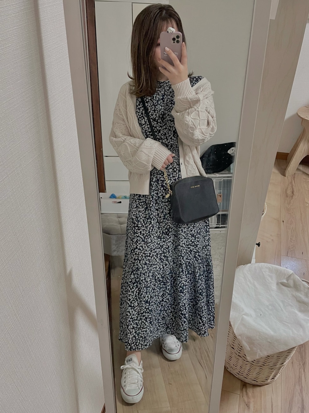 一昨年買ったジーユーのこのワンピース は本当に形が綺麗でウエストのとこきゅーってなっててすごい細見えする❤︎ カーディガンはえださんコラボかな? のしまむらカーディガン♫ わんこのお散歩コーデ✨