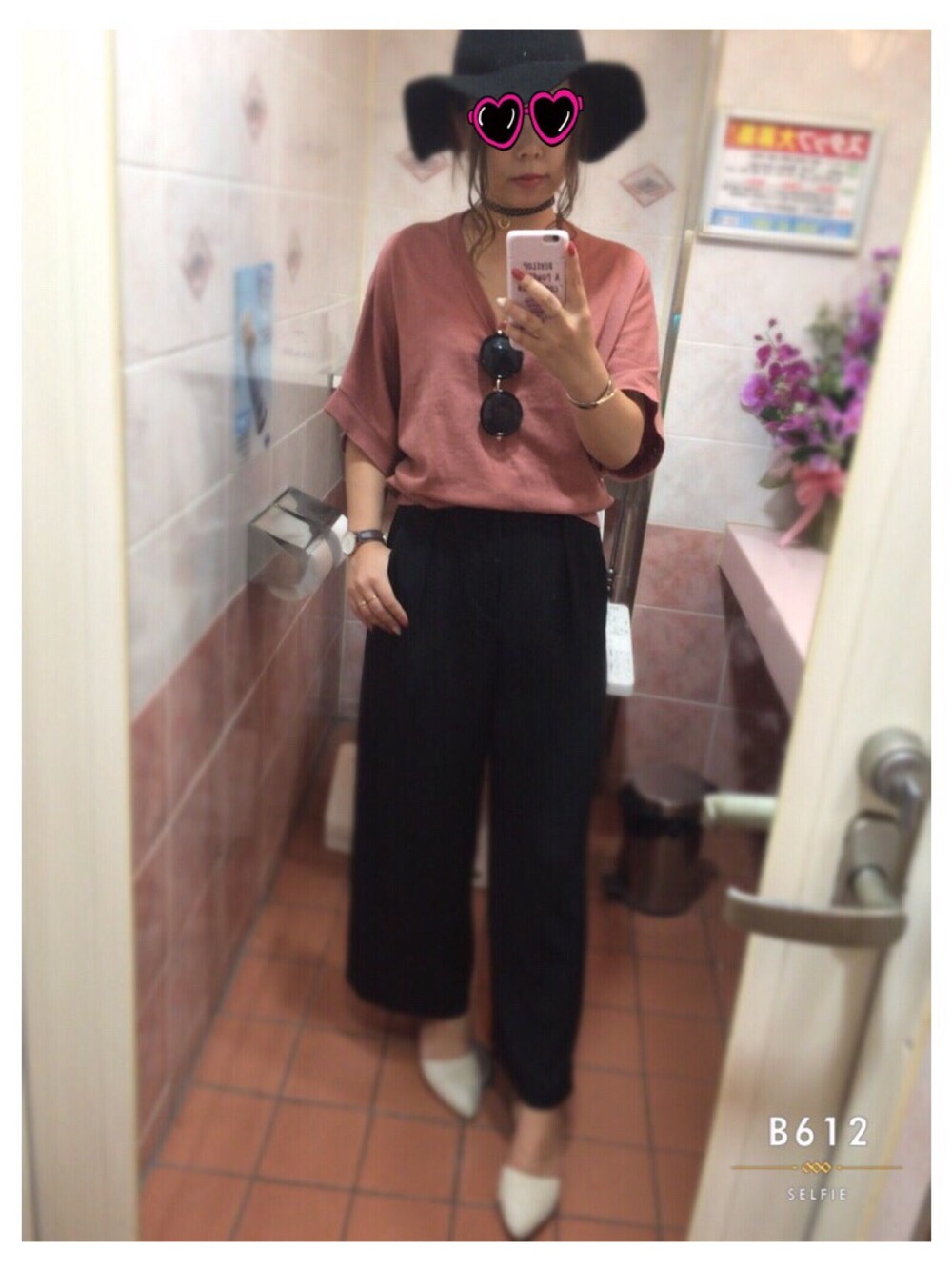 くすみピンクニットにUNIQLOのワイドアンクルパンツ♡ 首元はチョーカー💕