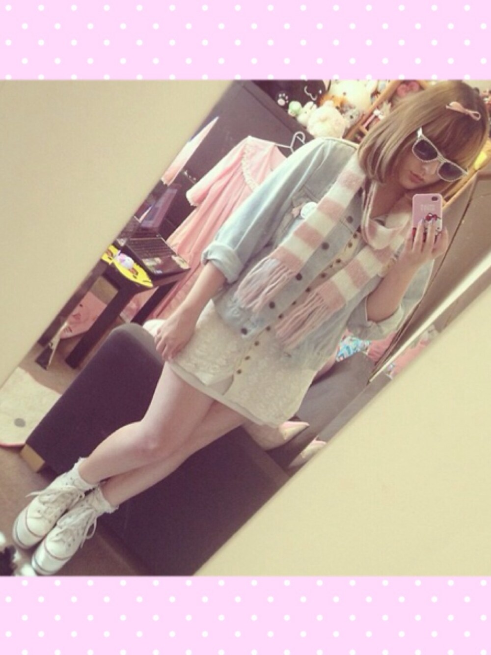 ホワイト系のスニーカーを着用したレディースの冬コーディネートの1枚目の写真