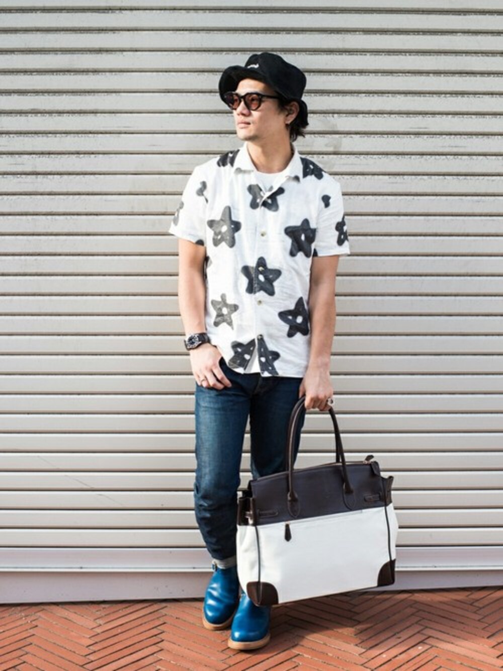 トップス:glamb ボトムス:glamb ヘッドウェア:glamb シューズ:MADE IN GM JAPAN バック:glamb アイウエア:MAX PITION オープンカラーシャツはお気に入りで2色買い。ここ最近、着用しているアイテムの中でも特に登板回数の多いお気に入りの一枚です。