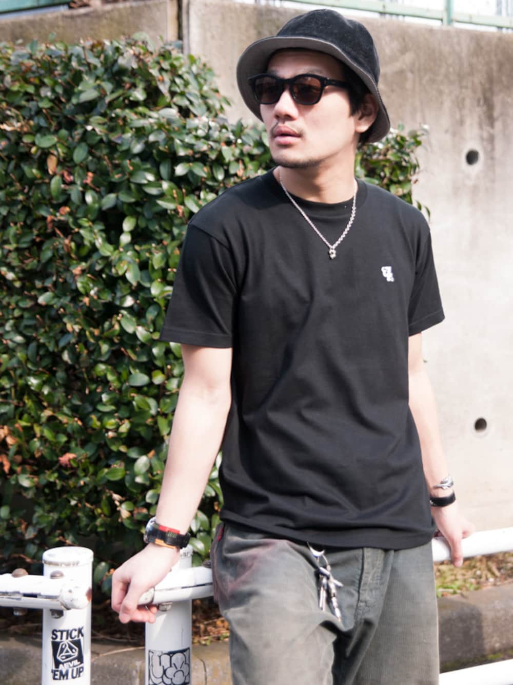 トップス:glamb × JAM HOME MADE × RED KAP(予約商品) パンツ:glamb バケットハット:glamb シューズ:WESCO ウォッチブレスレット:glamb × JAM HOME MADE(予約商品) シルバーバングル:glamb レザーブレスレット:Chrome Hearts アイウェア:白山眼鏡 ネックレス:7th-Heaven Art Jewelry キーフック:JAM HOME MADE 只今、先行予約受付中のJAMとのコラボレーションアイテムを用いたコーディネートです。
