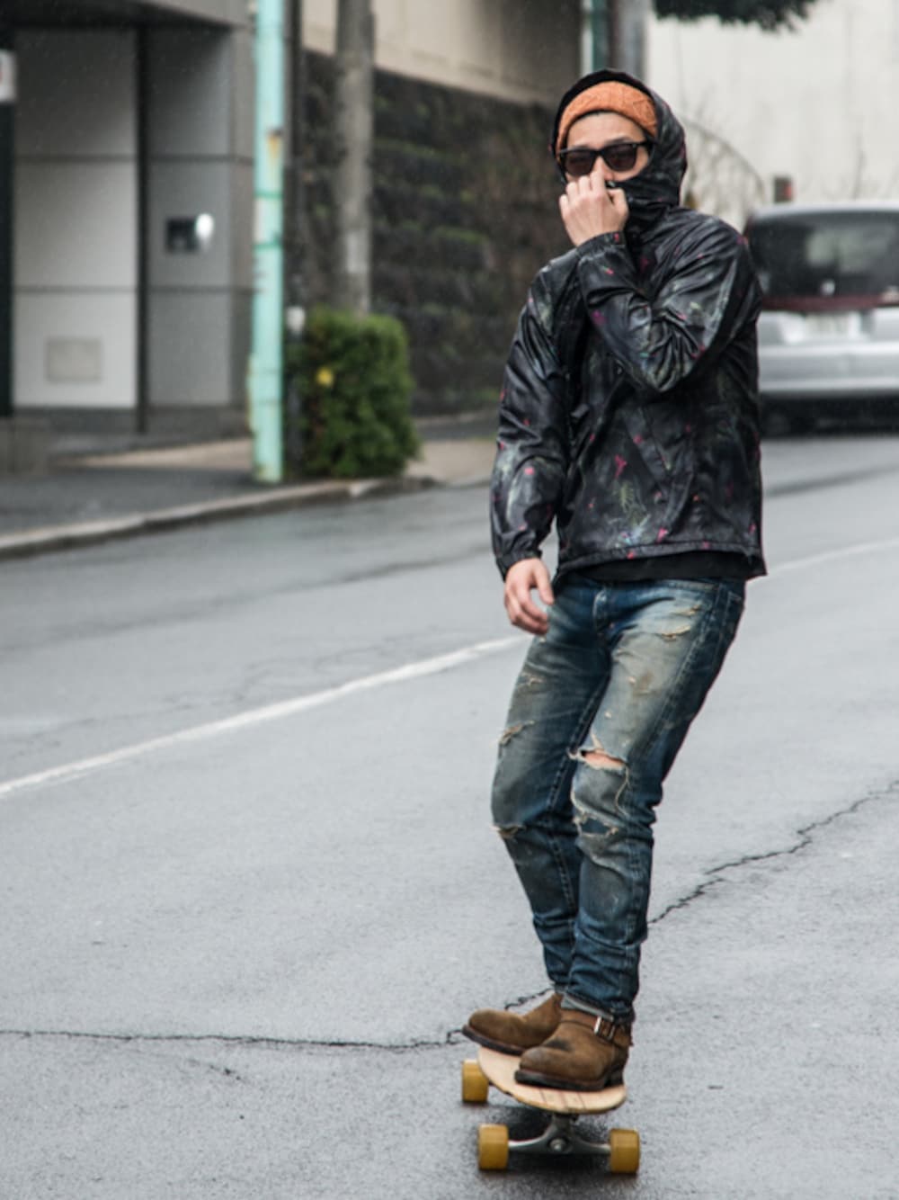 トップス:glamb パンツ:glamb ニットキャップ:glamb シューズ:RED WING アイウェア:glamb×Loyd 雨風強い本日のような気候はやっぱりマンパが活躍しますね。