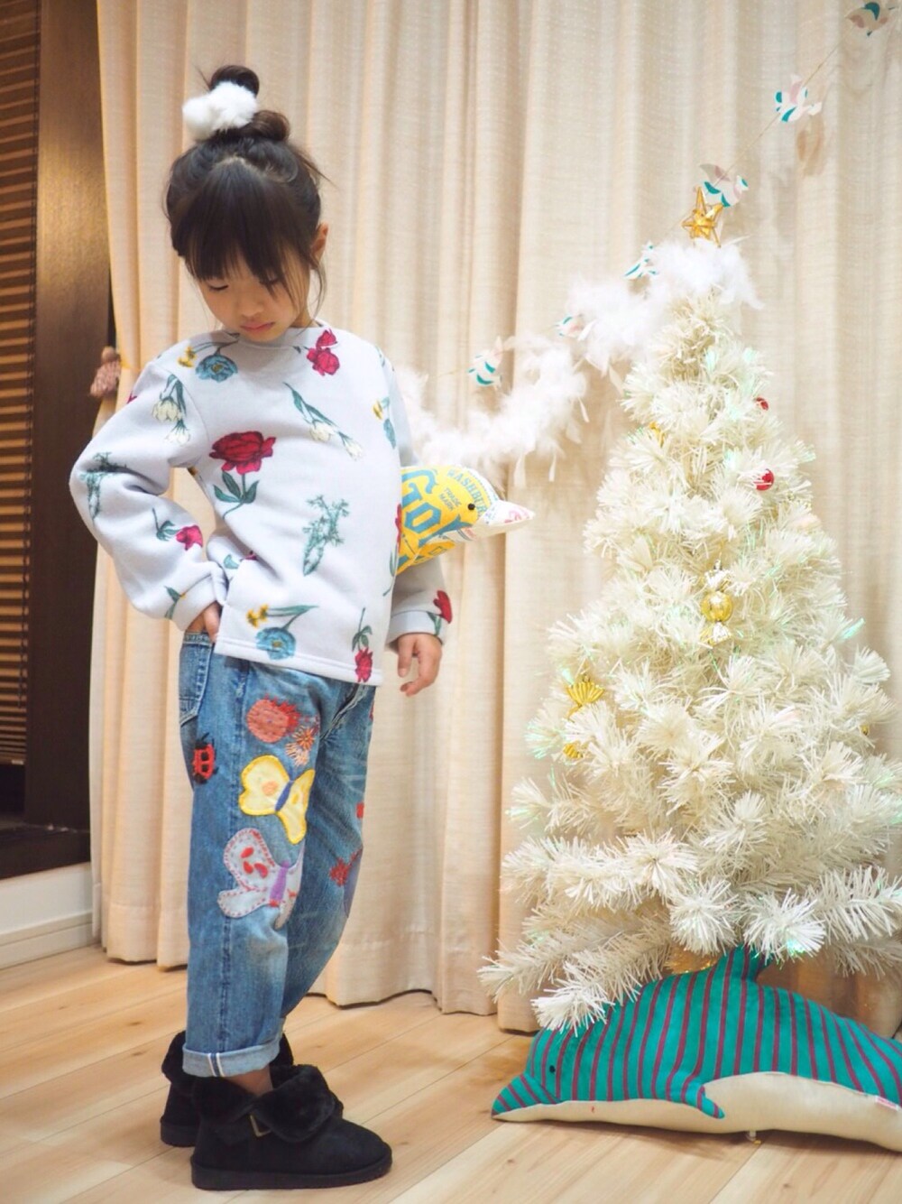 花 に 蝶 初雪到来、 とうとう我が家にも雪がつもる季節に。早くも春が恋しいです。 プティマイン トップス 120cmで130着用 GTHデニム 120着用