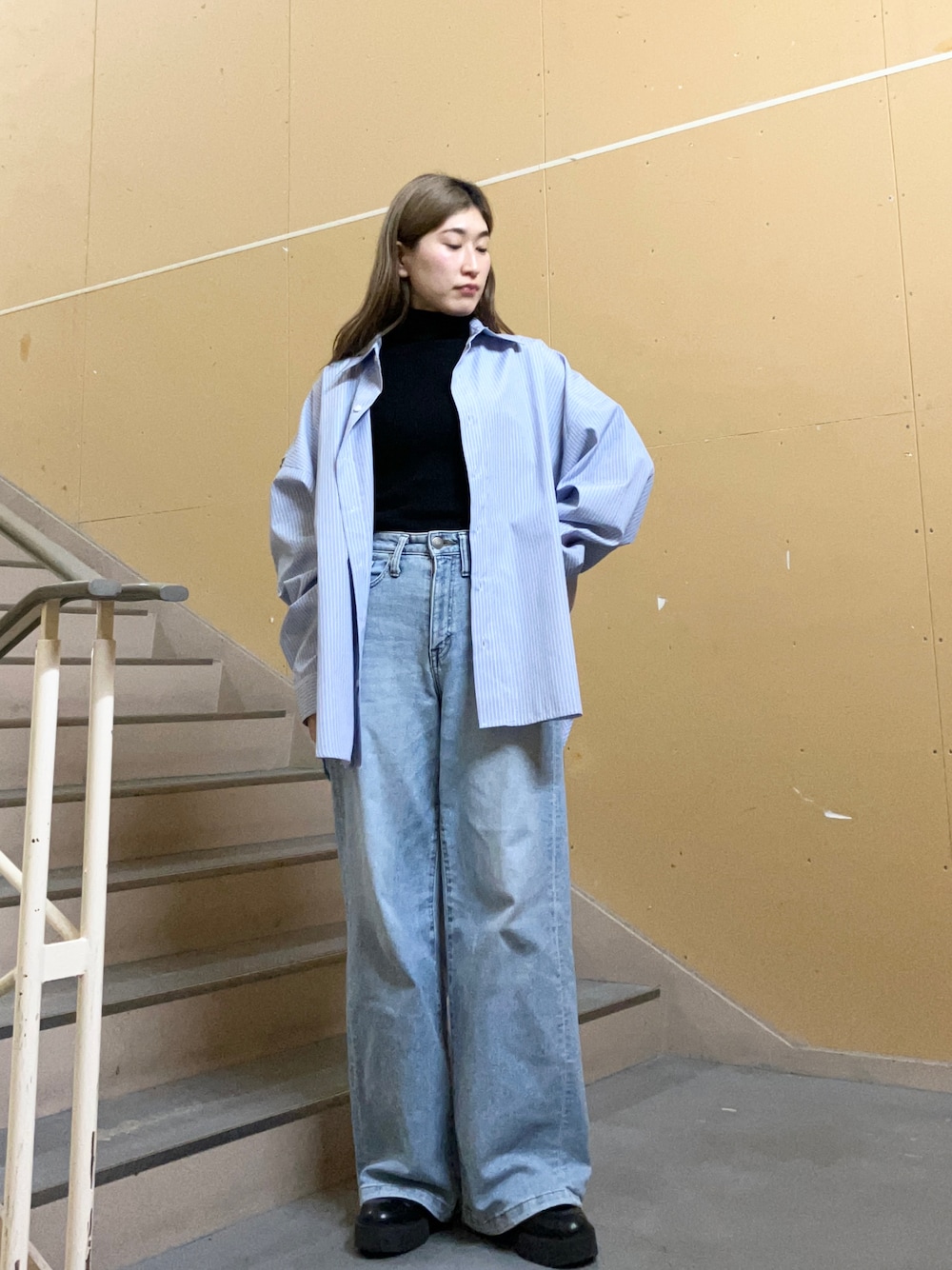 春を意識したシャツ×デニム!! まだ寒いのでタートルと合わせました!