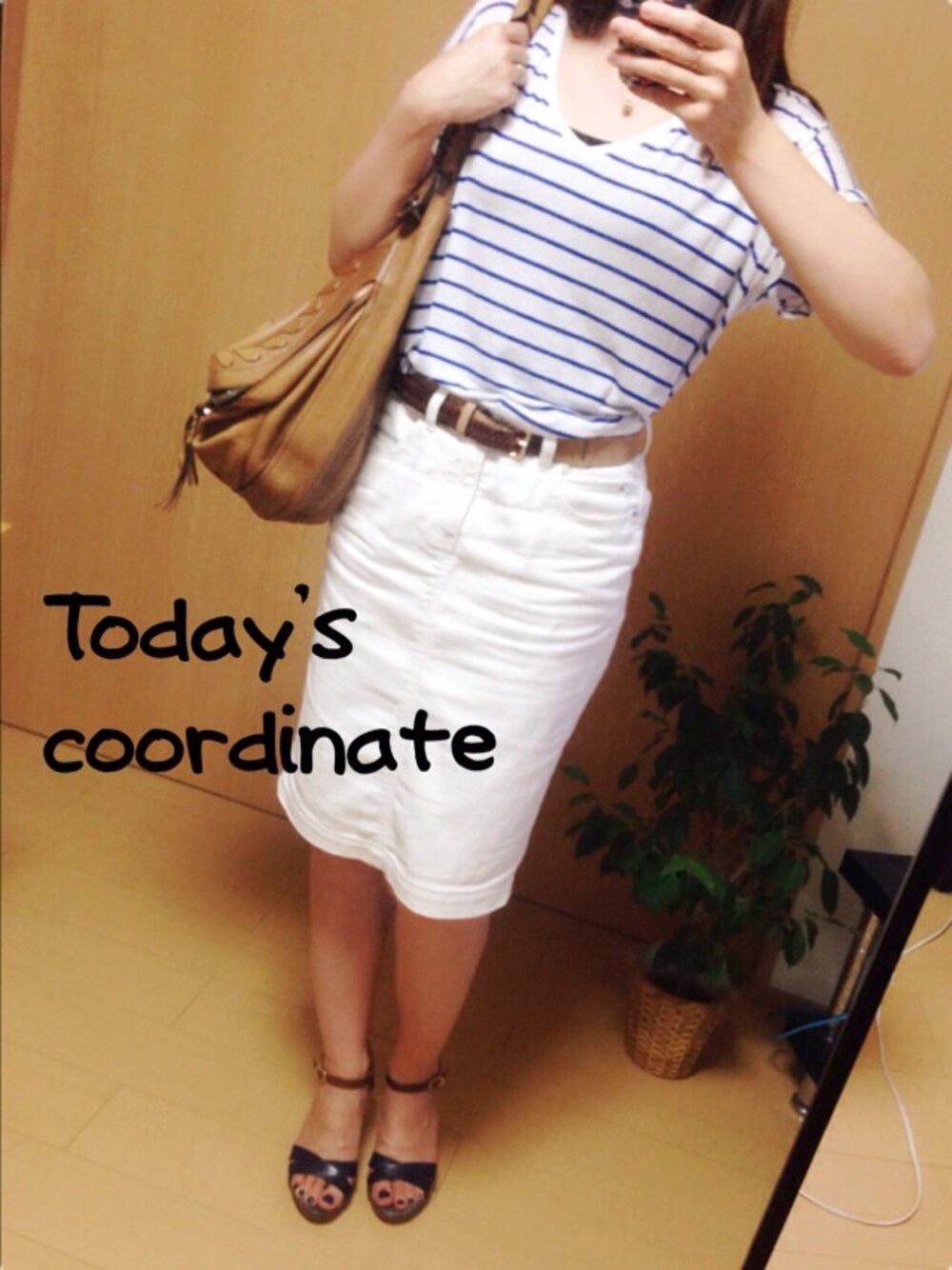 トップスはZARAです。 白デニムスカートはボーダーとばかり合わせてしまってるー!