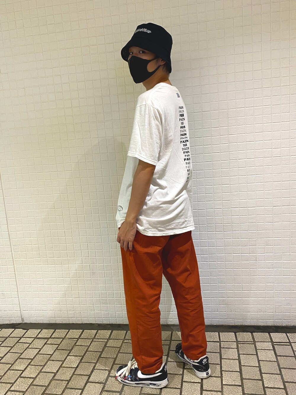 夏感たっぷりの韓国ファッション🇰🇷 バケハを被るとたちまち韓国ファッションに早変わり! からの白Tで爽やかさを演出しました🍃 パンツはダークオレンジで色をつけて シェフパンツなのでラフに履けます。 靴はパラノイズで決まり👍🏻