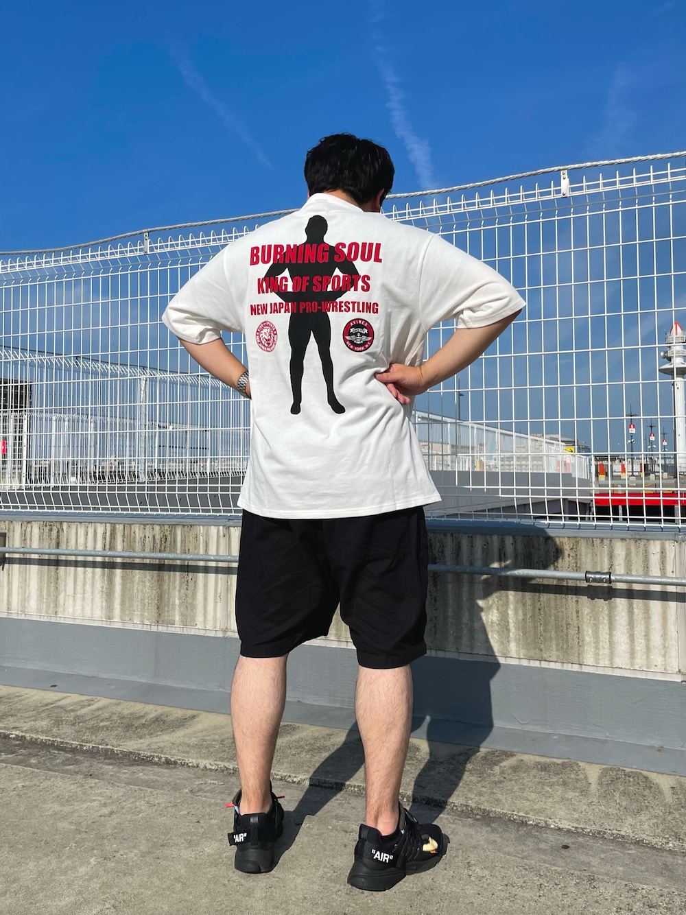 ざき(AVIREX MOZO ワンダーシティ)のトップス「【新日本プロレス × AVIREX】半袖 バーニング ソウル Tシャツ / S/S BURNING SOUL T-SHIRT」を使ったコーディネート