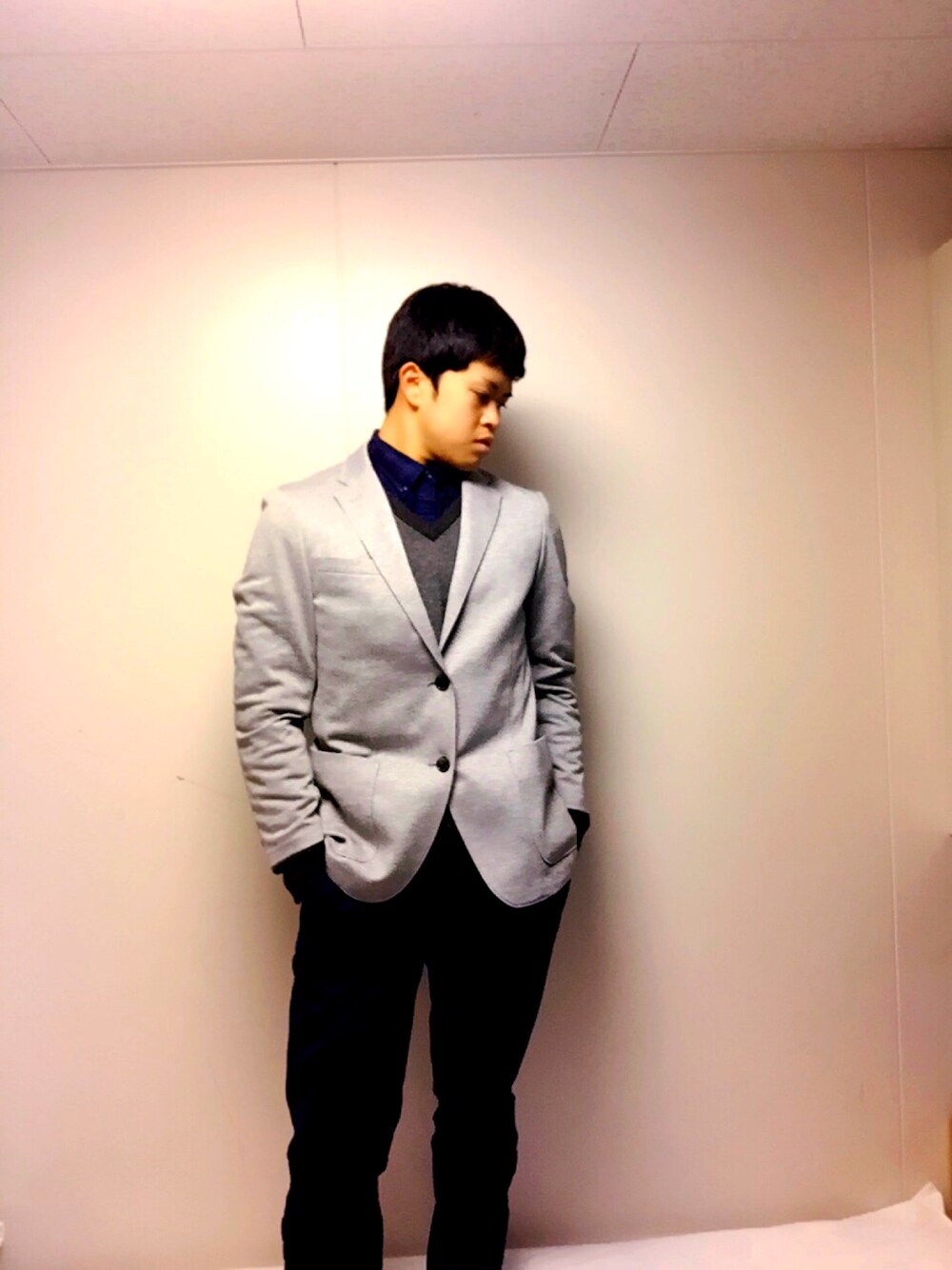 「ちょっと今日はいつもより決めて行きたいなぁ」とおもったらこんな感じではいかがでしょう TOMYのパンツとシャツは濃いめの青だったらどこのブランドでも大丈夫です! セーターも基本ブランドはなんでも! こんな感じでいつもと違った自分を出してください