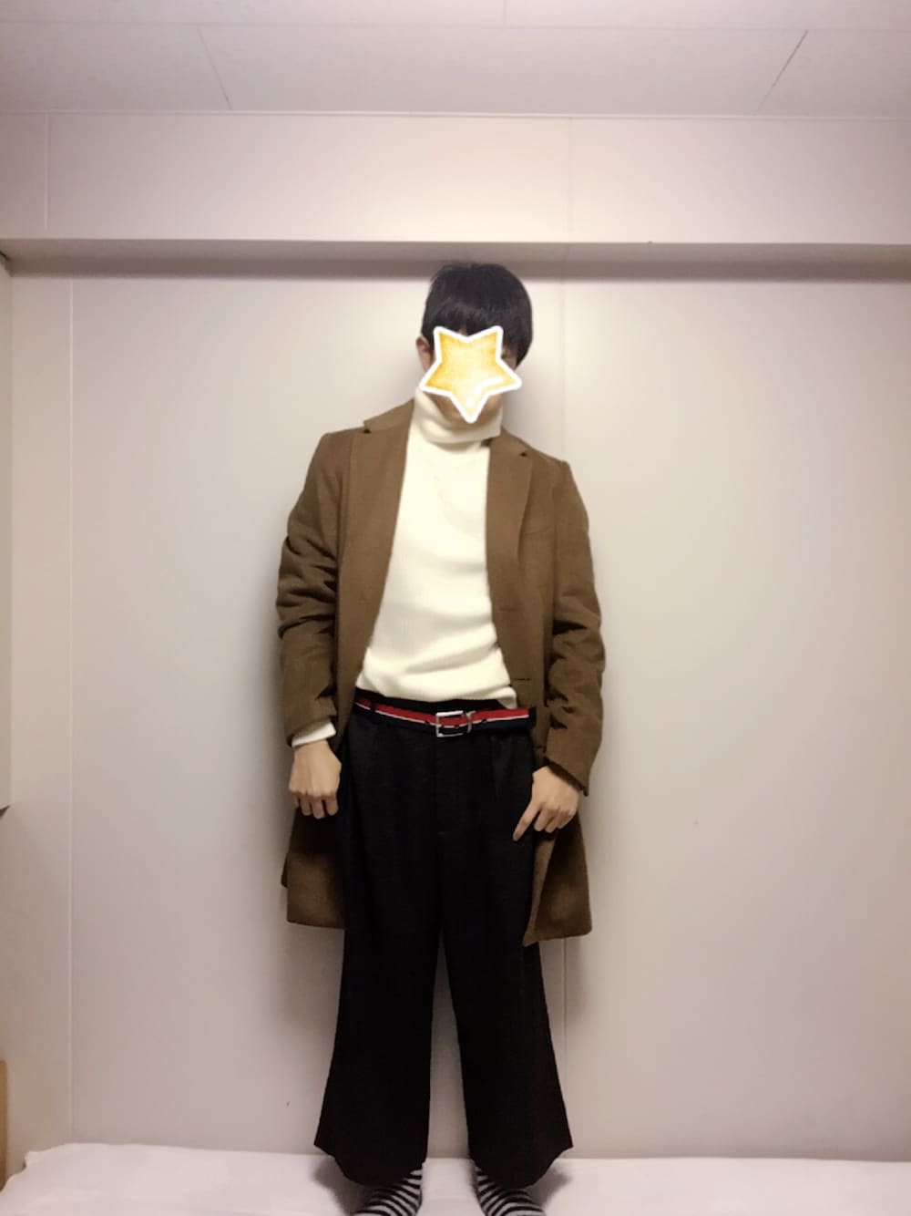 西村泰一のニット/セーター「(GU)ボリュームタートルセーター(長袖)A OFF WHITE XL」を使ったコーディネート