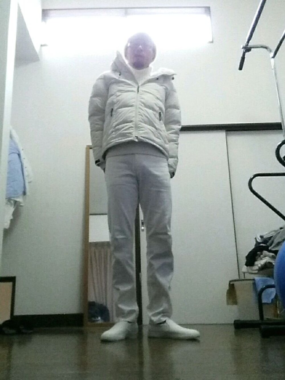 雪ダルマ仕様。雪降りそうで洒落で同化しようとして着たけど降らないし恥ずかしいしで外には出ないまま終了したコーデ(笑)