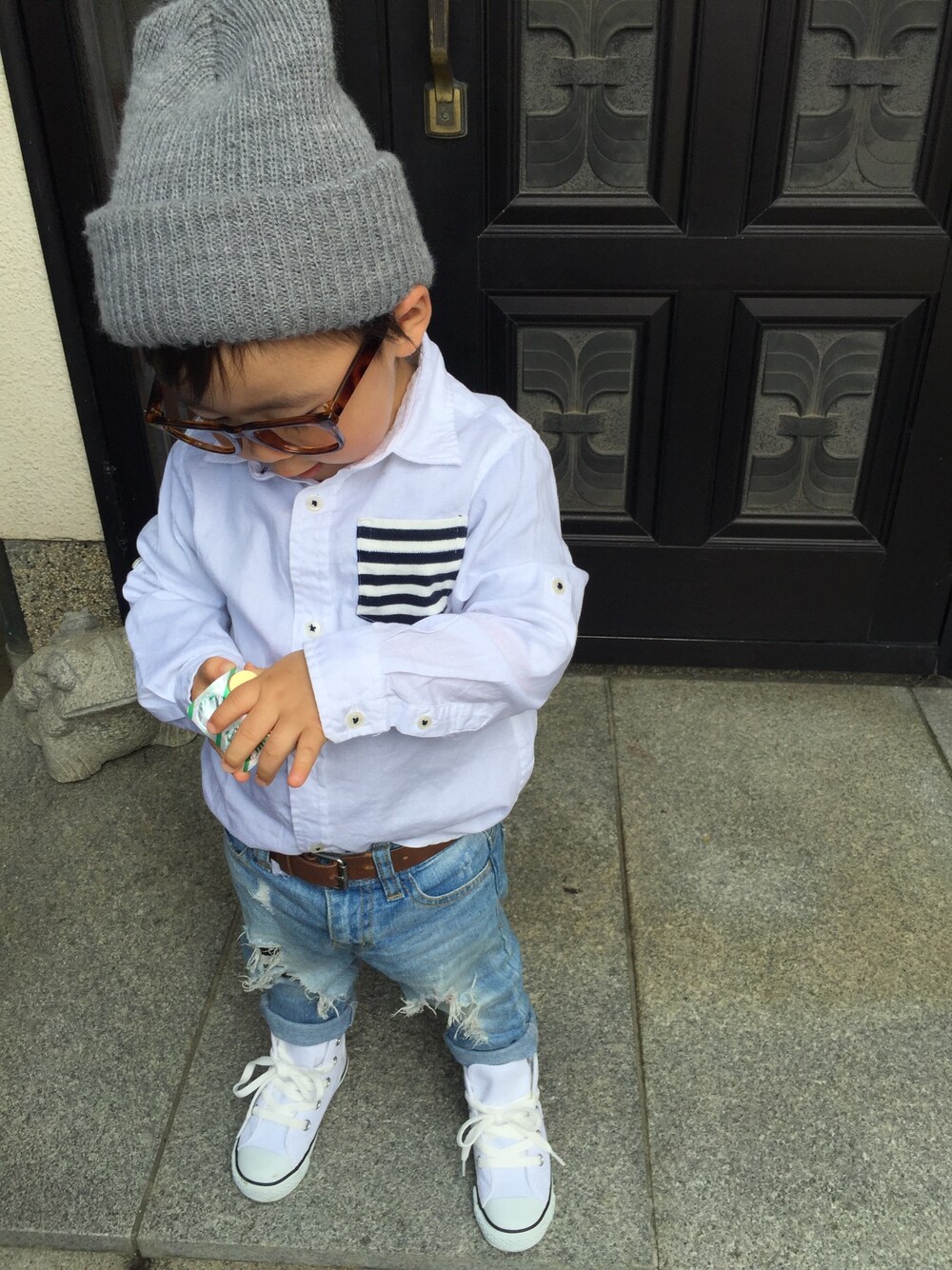 2年前にパパとお揃いアイテムで 一目惚れしてもてフライングしすぎで 買ったシャツがやっと着れるように♡ カッコイイです♡
