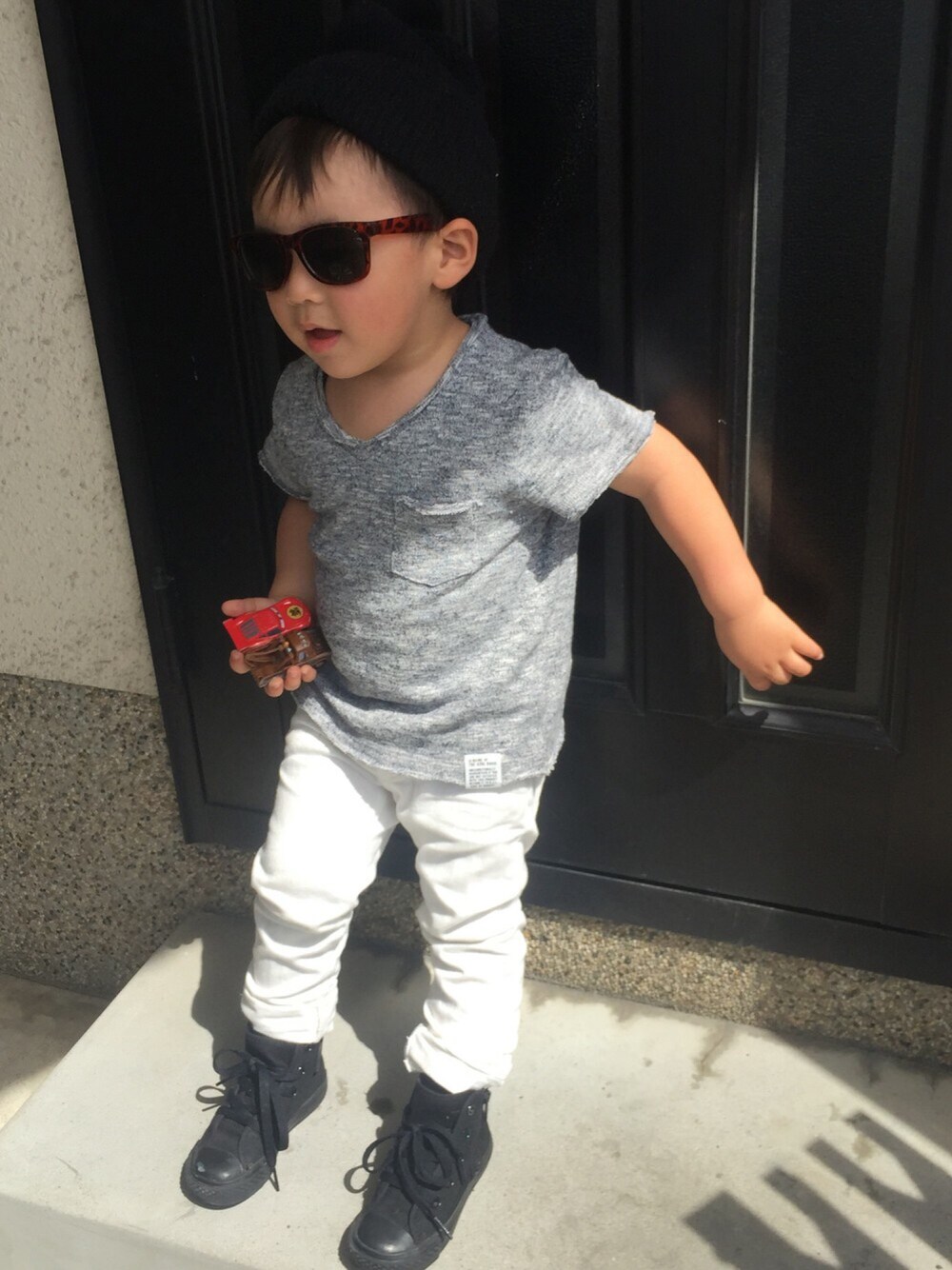 男前コーデ♡ やのに前髪が残念な事に、、、笑 100サイズに手を出しはじめた アズールもでびゅー♡