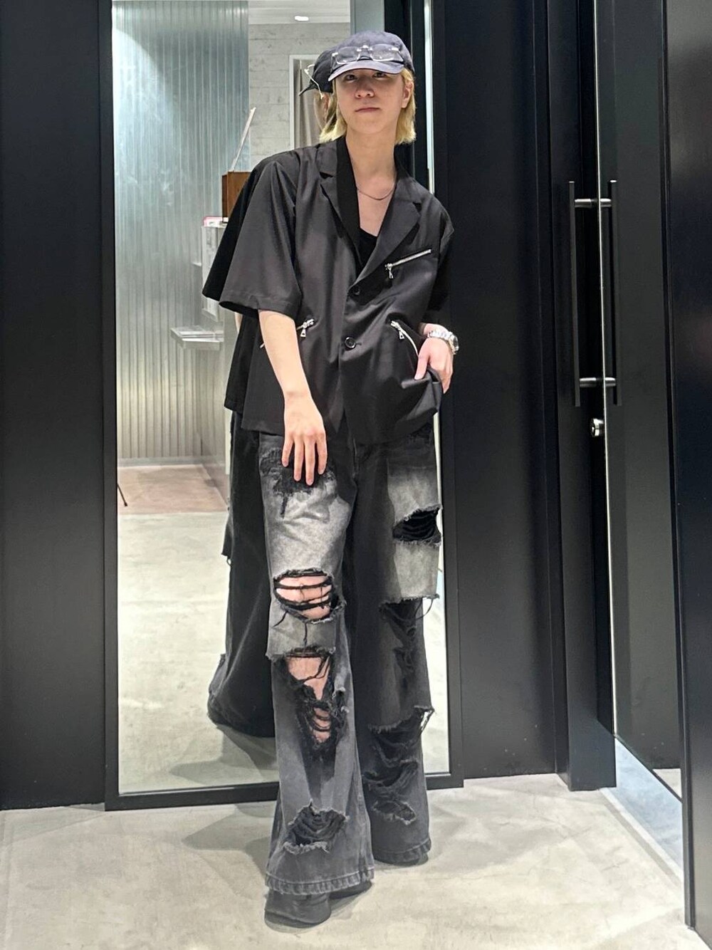 🥀Instagram (@taigawed)🥀 174/58 ジャケットコーデ🥀 ジャケット →ZIPのデザインが入ってるので、カッチリキマり過ぎないのがポイント!! お洒落アイテムとして半袖になっているので、色々なコーデ着回しが出来ます✨ デニム →ワイドシルエットのダメージデニム!! 今流行りのデザイン!このデニム1本で韓国系にも、ストリート系にも、モード系にも、寄せる事ができます✨