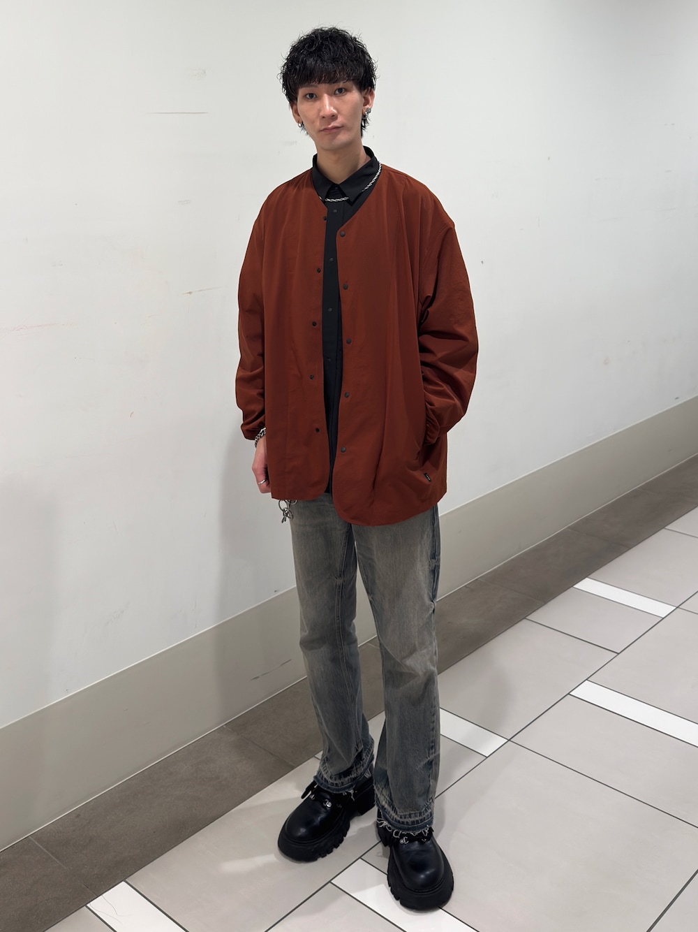 EKAL DOT AIR LS SHIRTSを主役にしたコーディネート。 軽やかな素材感で、さらっと羽織れる1着。 インナーはブラックでまとめて、シャツのカラーを引き立てました。 デニムと合わせて程よくラフに仕上げた、大人のカジュアルスタイルです。