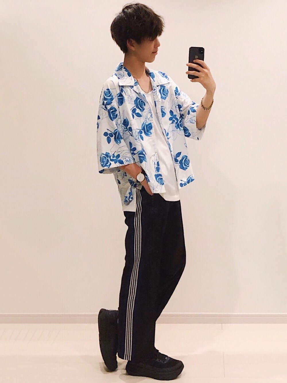 爽やかトラックパンツコーデ💫 いつもご閲覧ありがとうございます! 少しでもいいなと思ったらいいねやお気に入り(+)してくれると更新の励みになるので良かったらお願いしますー! 黒白青で統一する事で、爽やか+コーデがまとまりお洒落な印象に🙆♂️ 今季らしくシャツは肘が隠れるくらいのサイズ感がオススメです✨ トラックパンツにはボテっとしたスニーカを合わせるとより雰囲気がでてオススメですー! 【size】 シャツ M インナー M パンツ XS スニーカー 26 またね✨