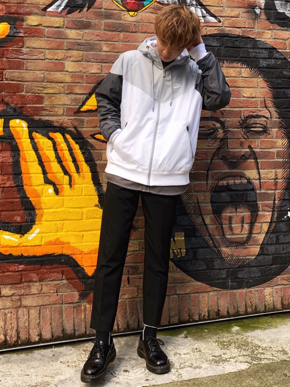たいち / モテ男製造機 のナイロンジャケット「ナイキ スポーツウェア ウィンドランナー ユニセックス フーデッド ジャケット / NIKE」を使ったコーディネート