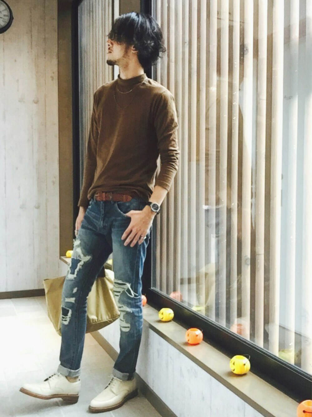 本日のコーデテーマ🎵 「大人のシンプルコーデ」 ダメージデニムを、シンプルに合わす。 Uチップの白靴でボカし、素足風を装って大人っぽく。 ハイネックにネックレスを2本、シルバーとゴールド。 ベルトをチラ見せ。 で、ちょっとカバンを持てば… こーなります。笑 ではでは、また明日〜🎵